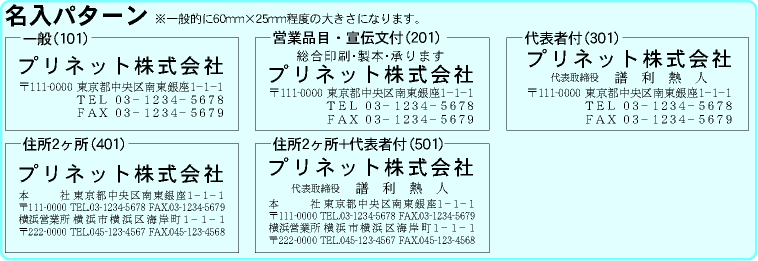| ●2回目以降、内容に変更が無ければ、社名作製料金は発生しません。 |